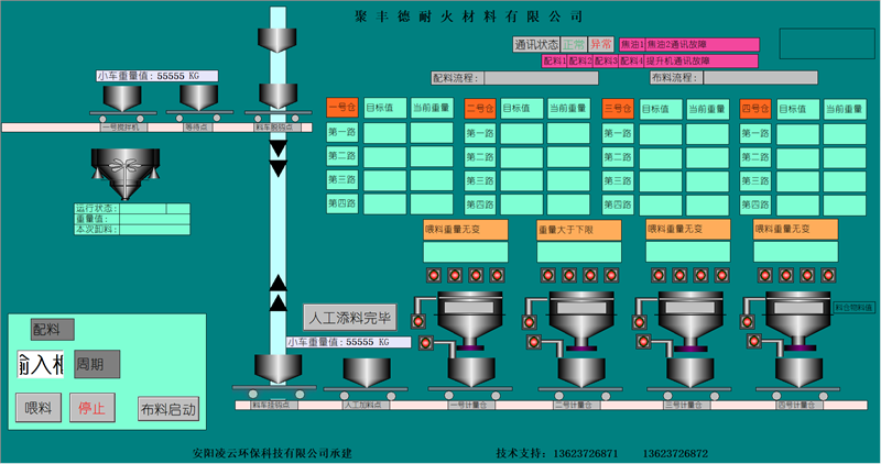 本公司擁有優(yōu)良的生產(chǎn)設(shè)備和技術(shù)開發(fā)團(tuán)隊,以良好的管理模式,豐富的生產(chǎn)和設(shè)計經(jīng)驗為環(huán)保工作做出了的一定的貢獻(xiàn)。主要針對鋼鐵、耐材等行業(yè)無塵環(huán)保配料工藝的改進(jìn),設(shè)計和生產(chǎn)全自動化無塵配料設(shè)備。除塵部分分為:集中式收塵和分散式收塵。計量部分分為:增量計量和減量計量控制模式。控制部分分為:純單片機(jī)控制、單片機(jī)加PLC控制、純PLC控制。